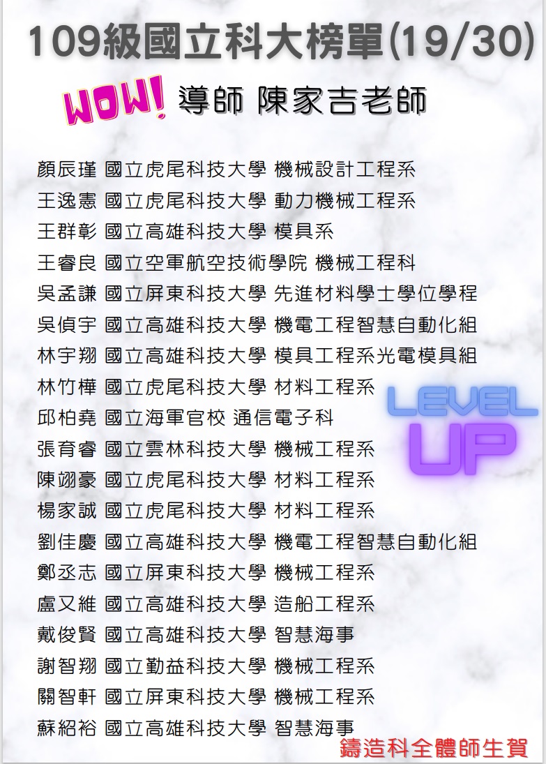 109學年度升學榜單